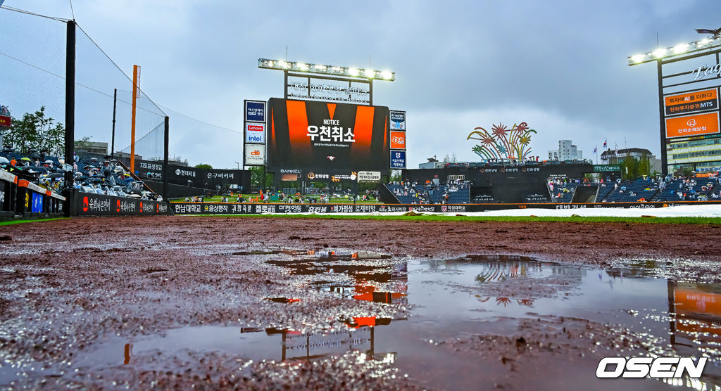 다시 굵어진 비로 우천 취소된 28일 한화-LG전, 결전은 내일로