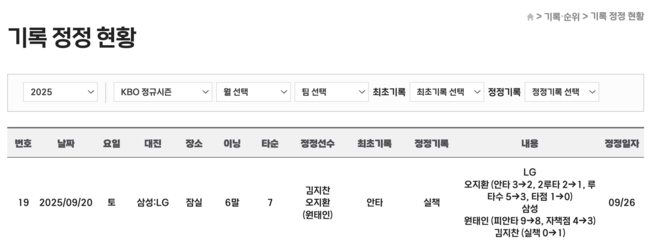하지만 삼성 구단이 해당 장면을 실책으로 정정해 달라고 KBO에 요청했고, KBO 기록위원회는 심의 끝에 오지환의 타구를 실책으로 정정했다.