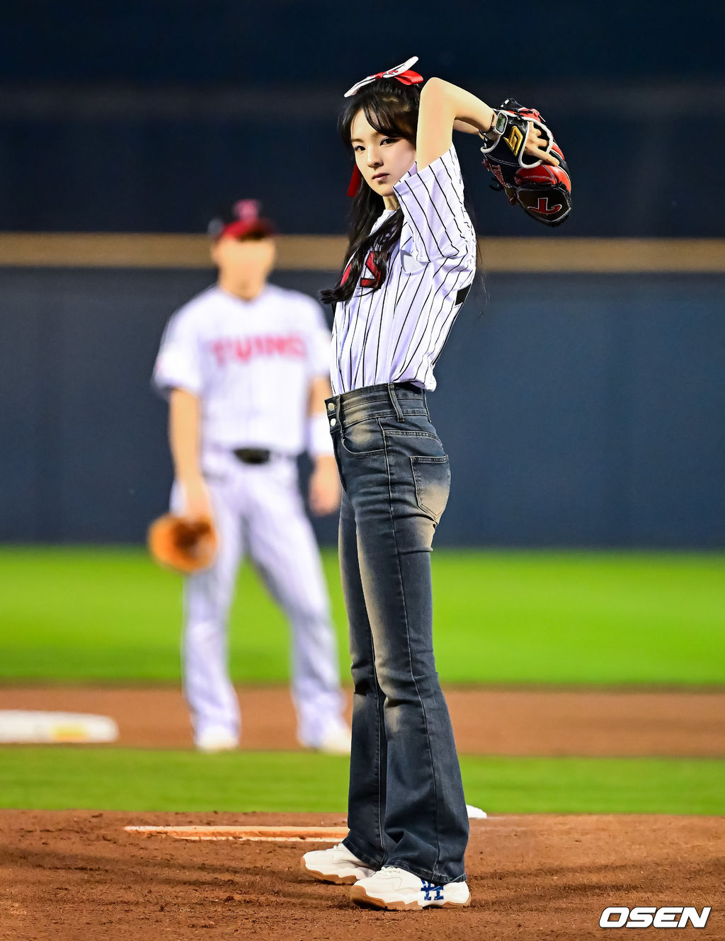 경기에 앞서 가수 규빈이 시구를 하고 있다. 2025.09.30 /jpnews@osen.co.kr