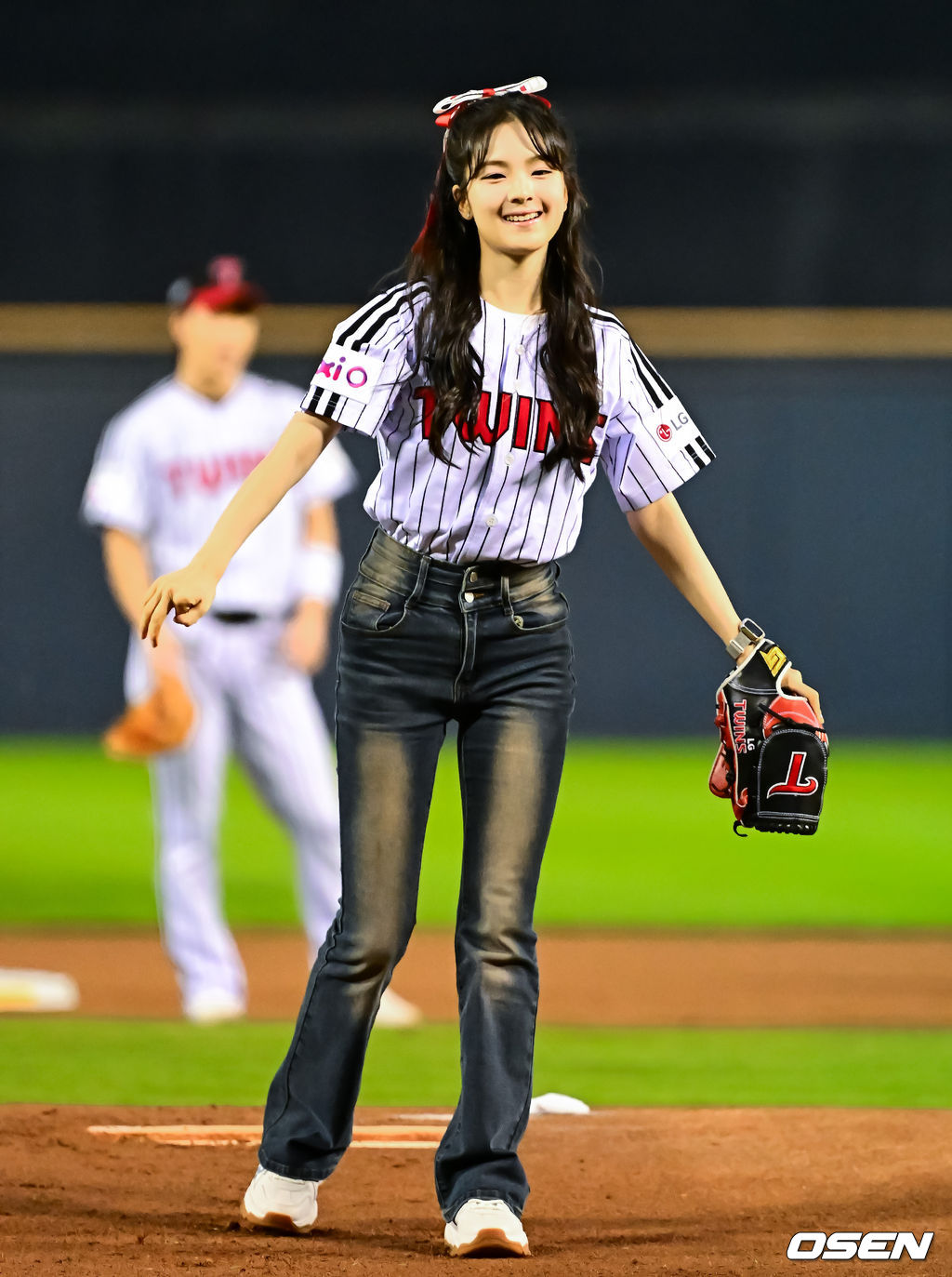 경기에 앞서 가수 규빈이 시구를 하고 있다. 2025.09.30 /jpnews@osen.co.kr