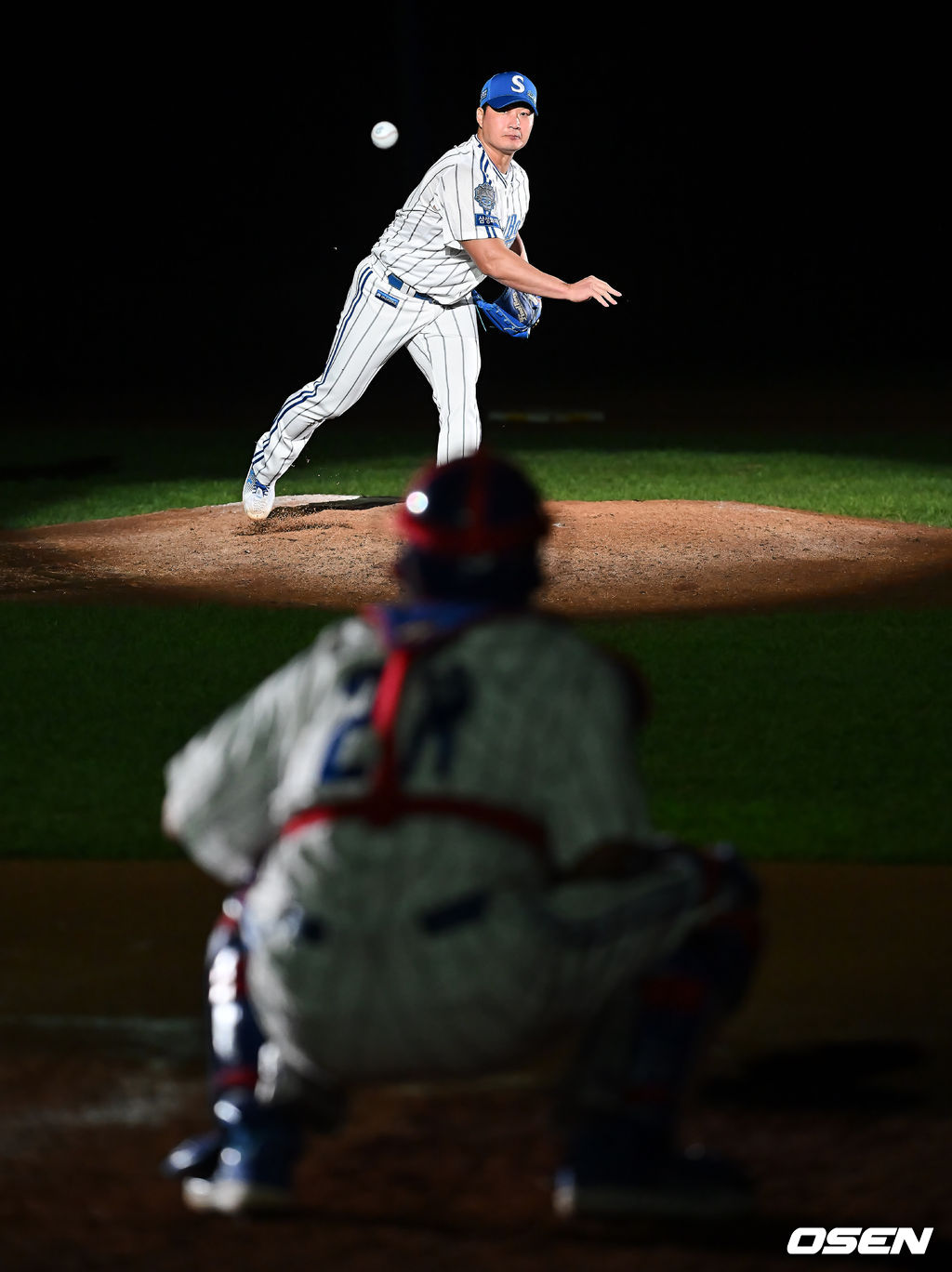 삼성 오승환이 은퇴식에서 강민호에게 마지막 투구를 하고 있다. / foto0307@osen.co.kr