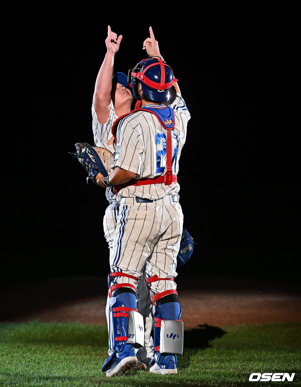 삼성 오승환이 은퇴식에서 마지막 투구를 받아준 강민호와 세리머니를 하고 있다. / foto0307@osen.co.kr