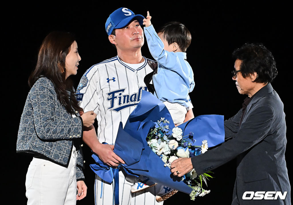 삼성 오승환이 은퇴식에서 가족들과 기념촬영을 하고 있다. / foto0307@osen.co.kr