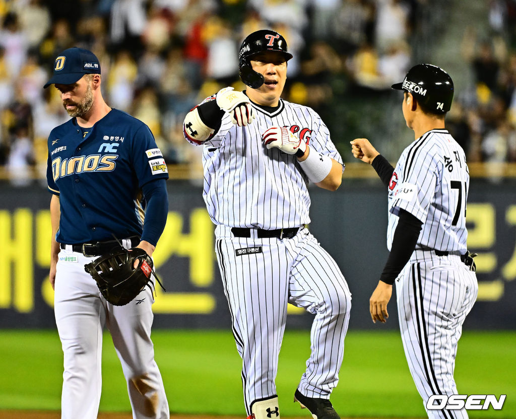 1회말 2사 2루에서 LG 김현수가 선제 적시타를 날리며 기뻐하고 있다. 2025.10.01 /jpnews@osen.co.kr
