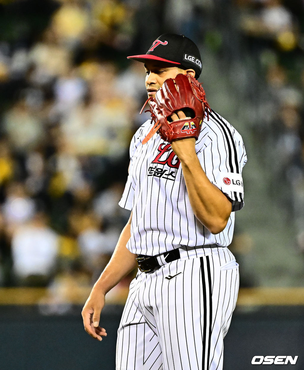 3회초 1사 3루에서 LG 치리노스가 NC 최원준에 동점 1타점 우전 적시타를 허용하며 아쉬워하고 있다. 2025.10.01 /jpnews@osen.co.kr