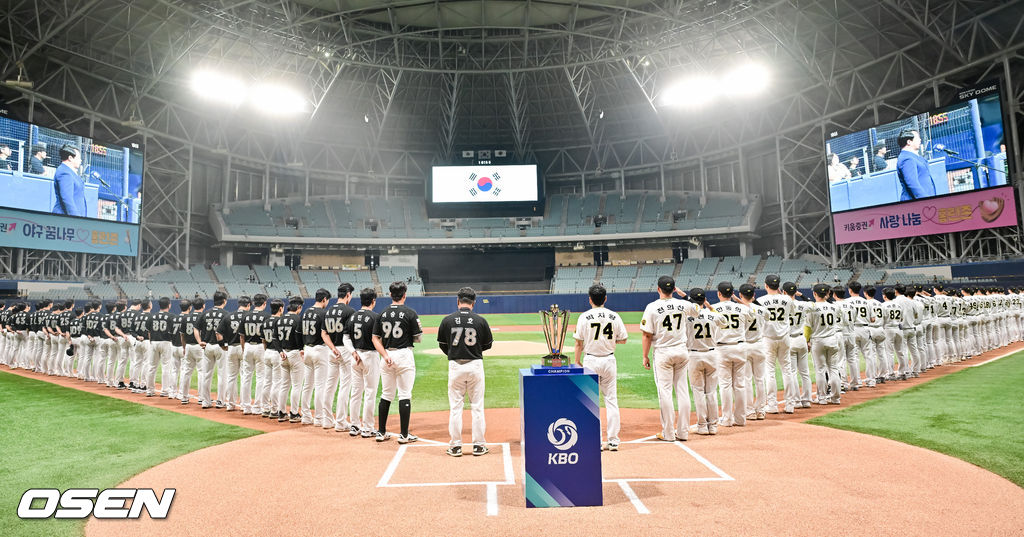 경기 앞서 진행된 식전행사 그라운드에 도열한 양팀 선수들. 2025.10.01 / soul1014@osen.co.kr