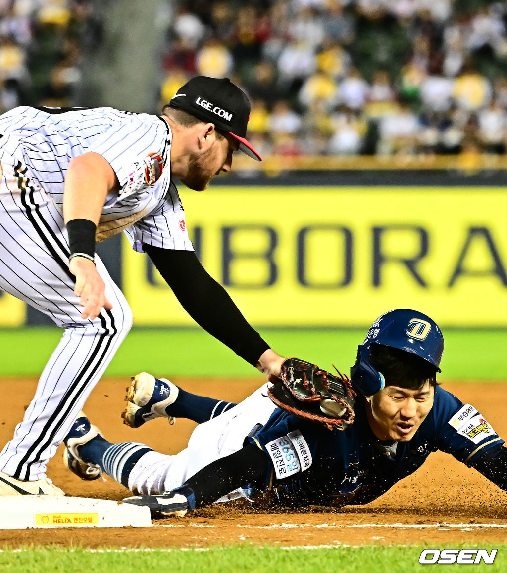 3회초 1사 1루에서 NC 최원준이 견제에 걸려 LG 오스틴에 태그아웃 당하고 있다. 2025.10.01 /jpnews@osen.co.kr