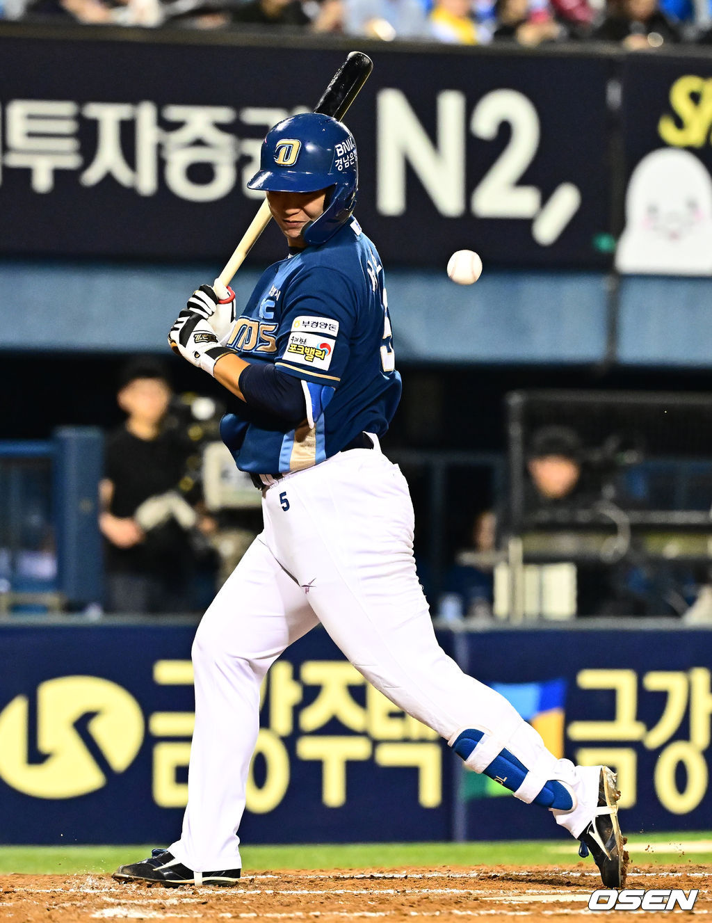 4회초 1사 1루에서 NC 서호철이 LG 치리노스 투구에 맞고 있다. 2025.10.01 /jpnews@osen.co.kr