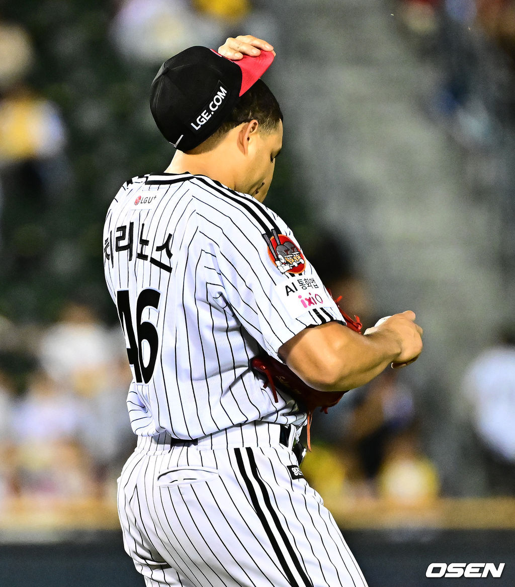 4회초 1사 1루에서 LG 치리노스가 NC 서호철에 사구를 허용하며 아쉬워하고 있다. 2025.10.01 /jpnews@osen.co.kr