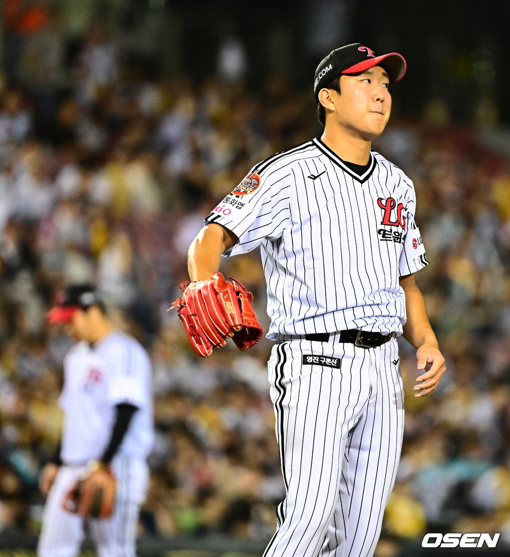5회초 1사 1,2루에서 LG 손주영이 NC 권희동에 볼넷을 허용하며 아쉬워하고 있다. 2025.10.01 /jpnews@osen.co.kr