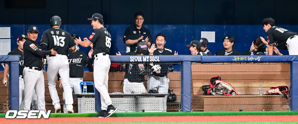 3회초 1사 2,3루 KT 최동희의 1타점 적시타와 이재원의 포구 실책으로 2득점 성공한 KT 선수단이 기뻐하고 있다. 2025.10.01 / soul1014@osen.co.kr