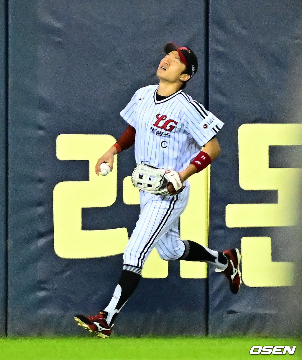 6회초 2사 만루에서 LG 박해민이 NC 권희동의 중견수 플라이 타구를 처리하며 안도하고 있다. 2025.10.01 /jpnews@osen.co.kr