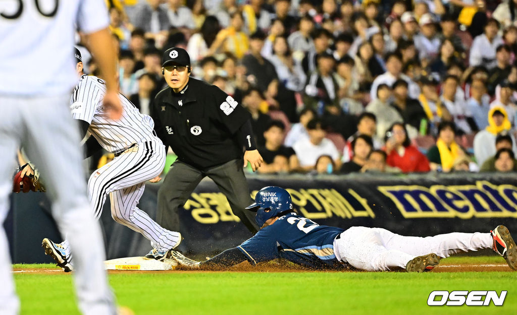 8회초 무사 1,2루에서 NC 천재환이 최원준의 보내기 번트에 3루에서 포스아웃 당하고 있다. 2025.10.01 /jpnews@osen.co.kr