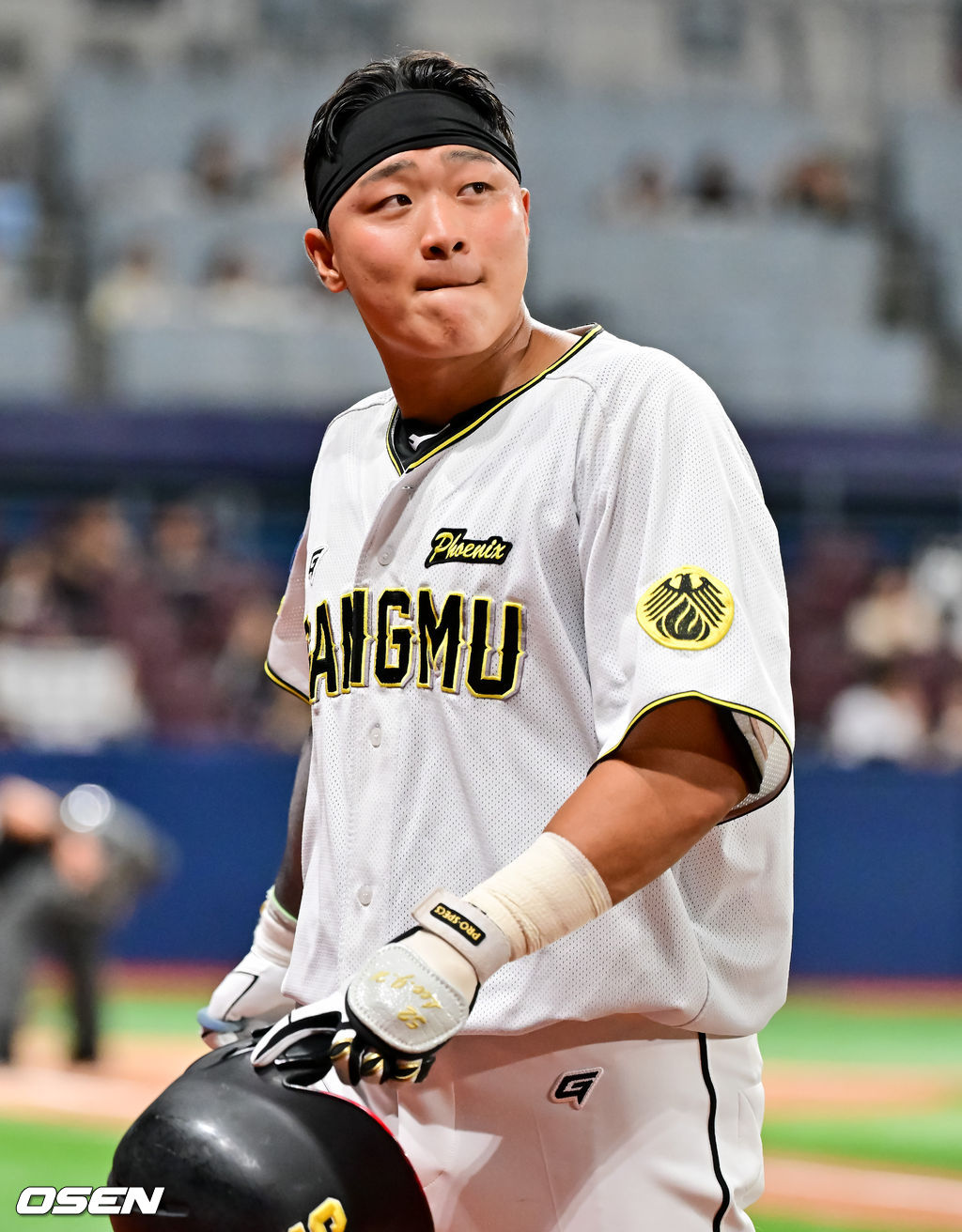 2회말 상무 이재원이 외야플라이 날린뒤 아쉬워하고 있다. 2025.10.01 / soul1014@osen.co.kr