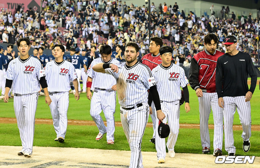 경기를 마치고 LG 선수들이 패배를 아쉬워하고 있다. 2025.10.01 /jpnews@osen.co.kr