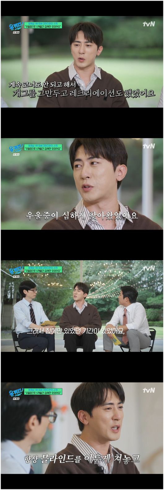 그는 “우울증이 찾아왔다. 집에만 있었던 시절이 있었다. 한 3~4개월 정도 커튼 치고 게임만 하고 그랬다”라면서 “나중에 몰랐는데, 어머니께서 지하 주차장에 제 차가 있으면 눈치가 보이셨다고 한다. 왜냐하면 제가 부담스러워하고 불편해할까 봐, 아무것도 안 하는 걸로 부모님 눈치를 볼까 봐 되게 신경 쓰였다고 하셨다”라고 말했다.