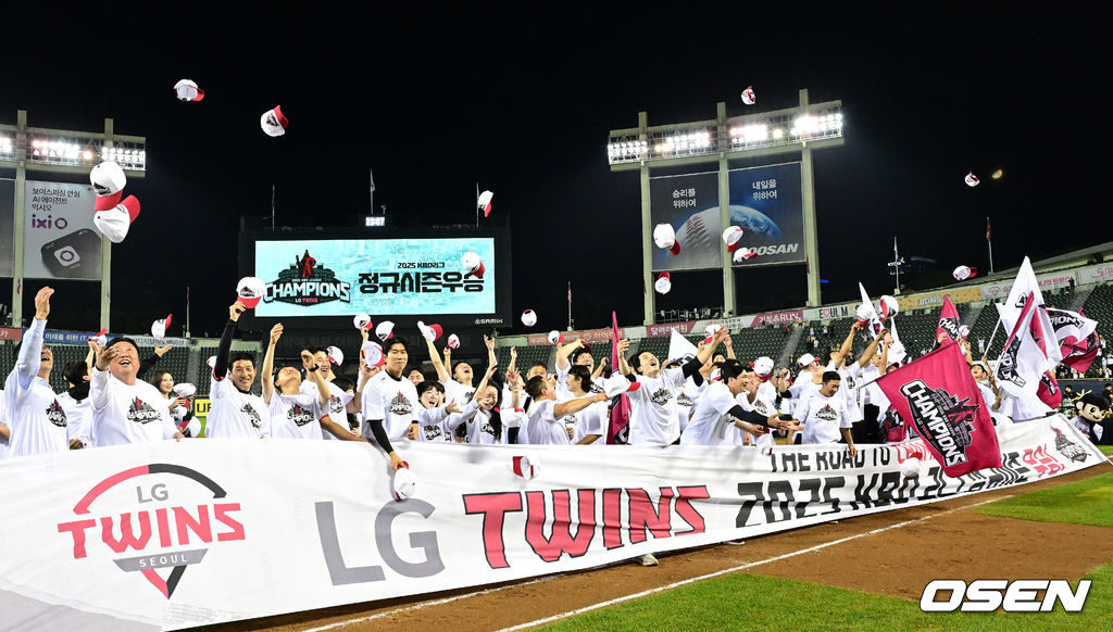 LG 선수단이 정규시즌 우승 세리머니를 하고 있다. 2025.10.01 /jpnews@osen.co.kr
