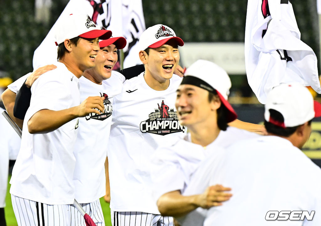 LG 오지환을 비롯한 선수들이 우승 세리머니를 하고 있다. 2025.10.01 /jpnews@osen.co.kr