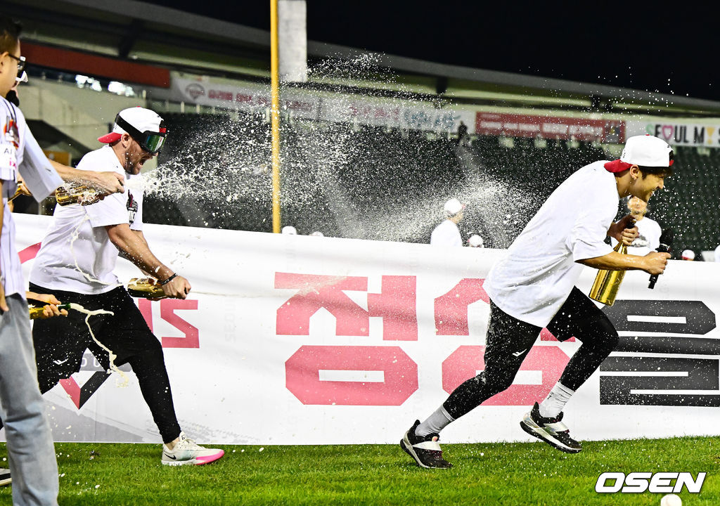 LG 오스틴, 박해민이 우승 세리머니를 하고 있다. 2025.10.01 /jpnews@osen.co.kr