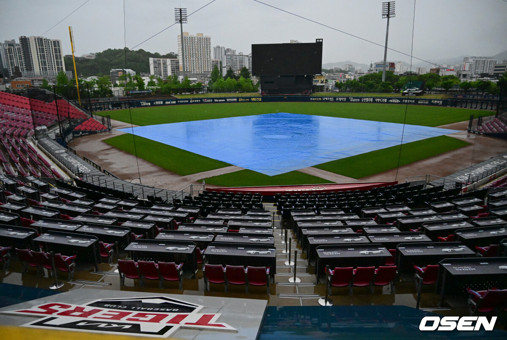 야속하게도 오히려 빗줄기가 굵어지면서 그라운드는 물이 흥건히 고이기 시작했다. 비가 그치더라도 그라운드 상태는 경기를 치르기 여의치 않았다. 한때 비가 그쳤고 관중 입장까지 허용하면서 경기 개최 가능성이 열렸다.