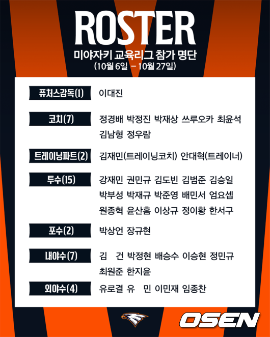 프로야구 한화 이글스는 4일 “오는 6일부터 27일까지 일본 미야자키에서 열리는 2025 피닉스 교육리그에 참가한다”며 교육리그 참가 선수단 28명을 발표했다.