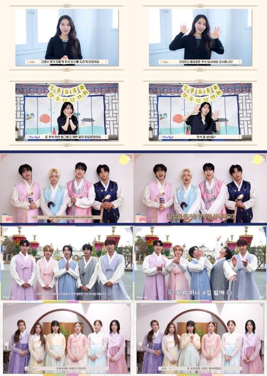 마마무+(솔라, 문별), 원어스(ONEUS), 원위(ONEWE), 퍼플키스(PURPLE KISS)는 오늘(5일) 각 아티스트의 공식 SNS를 통해 추석 인사 영상을 공개했다.