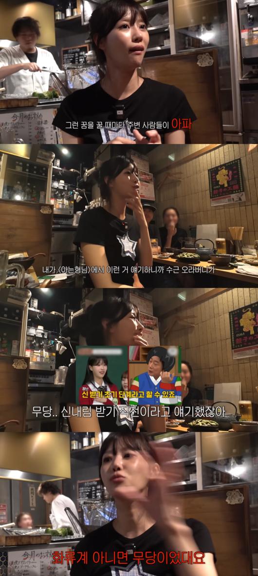 그는 과거 JTBC ‘아는 형님’에 출연했을 당시에도 이 같은 꿈 이야기를 한 적이 있다며 “그때 이수근 오빠가 ‘그거 신내림 받기 직전이다’라고 하더라”고 덧붙여 폭소를 자아냈다.