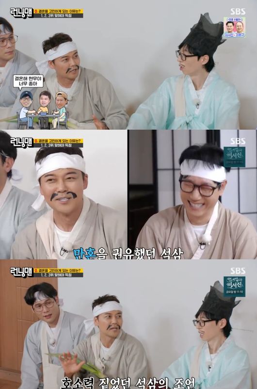 이날 '런닝맨' 제작진은 결혼을 고민하게 되는 이유 1, 2, 3위를 맞추는 것을 미션으로 제시했다. 이에 유재석 팀과 하하 팀으로 나뉜 출연진이 각자의 결혼관을 밝히며 이야기했다.