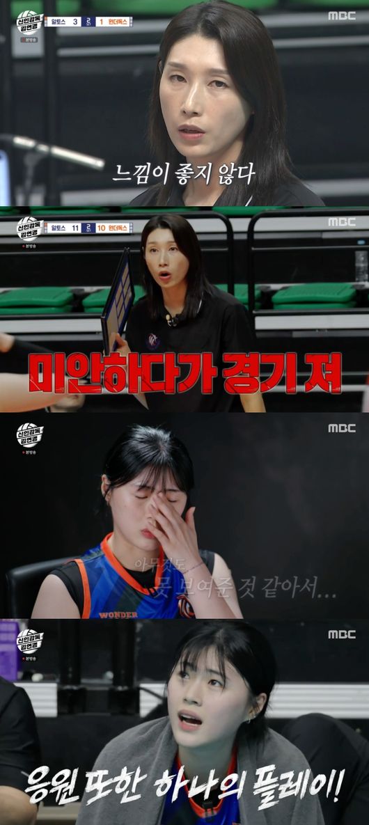 지난 5일 밤 방송된 MBC 예능 '신인감독 김연경' 2회에서는 원더독스가 프로팀 IBK기업은행 알토스와 경기를 펼쳤다. '언더독' 원더독스가 처음으로 프로팀과 맞붙는 만큼 고전이 펼쳐졌다.