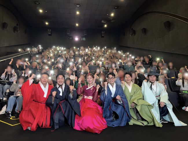 한편, 지난 10월 5일 진행된 ‘보스’ 무대인사에서는 추석 연휴를 맞아 극장을 찾은 관객들을 위한 깜짝 이벤트가 펼쳐졌다. 이날 행사에는 라희찬 감독을 비롯해 조우진, 정경호, 박지환, 이규형, 정유진 배우가 참석해 관객들에게 따뜻한 추석 인사를 전하며 특별한 시간을 가졌다. 특히 이들은 대한민국을 대표하는 한복 명장 박술녀 디자이너의 한복을 착용하고 무대에 올라 관객들의 시선을 단번에 사로잡았다. 박술녀 디자이너는 “전통 복식인 도포의 아름다움을 널리 알리고 싶던 차에, 추석 개봉작 ‘보스’를 통해 그 뜻을 전할 수 있어 기쁘다. 평소 좋아하던 배우들과 함께하게 되어 더욱 뜻깊다”라고 전했다. 배우들은 각자의 캐릭터 개성을 반영한 색감과 디자인의 한복을 입고, 관객들에게 큰절로 추석 인사를 하며 현장을 한층 더 뜨겁게 달궜다.