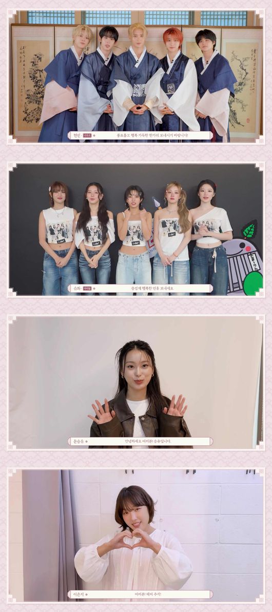 또한 각종 예능프로그램과 웹예능에서 활약 중인 이은지는 "가족들과 행복한 한가위 보내시고 모두 안전한 귀경길 되셨으면 좋겠다"며 유쾌한 에너지를 전했다. 이상준은 "온 가족이 모여 재미난 영상도 많이 보시고, 재밌는 이야기도 많이 하셨으면 한다"고 덕담을 나눴다.