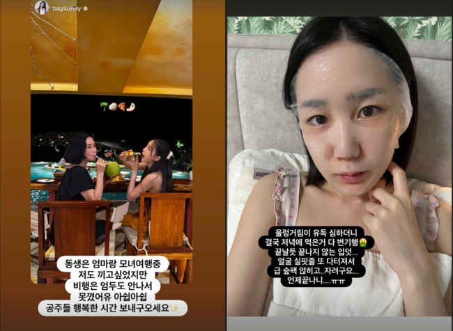 초아는 쌍둥이 동생 웨이의 SNS 사진을 공유하며 “동생은 엄마랑 모녀여행중. 저도 끼고싶었지만 비행은 엄두도 안나서 못꼈어유 아쉽아쉽. 공주들 행복한 시간 보내구오세요”라고 덧붙였다.