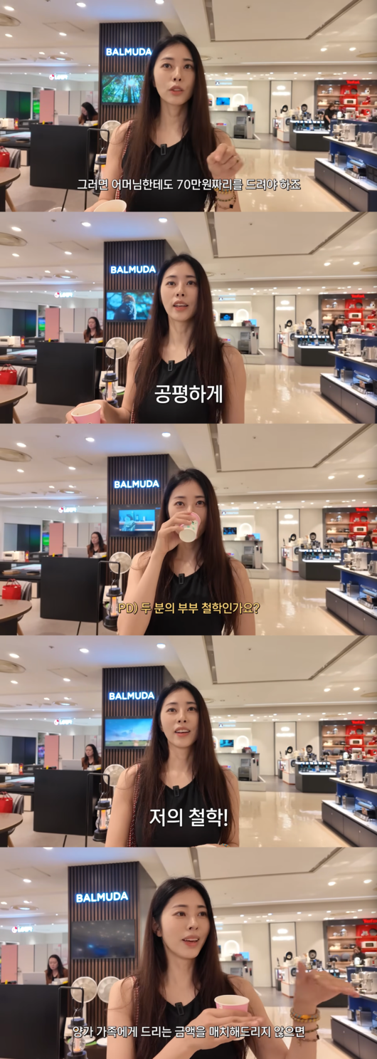 제작진이 “부부 철학이냐”고 묻자, 서동주는 “저의 철학이다. 남편은 사실 그냥 가격차이가 있더라도 각자 좋아하는 걸 드리자고 하는데, 저는 약간 불편하다. 양가 금액을 매칭하지 않으면 제가 불편하다. 근데 남편은 각자 취향이 있는 건데 신경쓰지 말라고 한다”고 밝혔다.