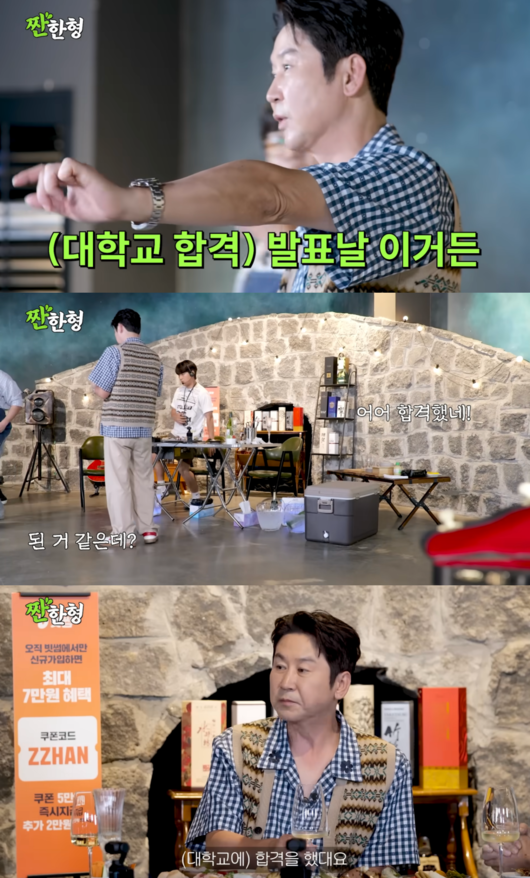 신동엽은 “개인적인 건데 지금 저 형 저런 것처럼 우리 딸 지금 대학교 합격 발표나는 날이다”라고 했다. 이후 휴대폰을 받아든 신동엽은 “합격했네”라며 웃었다. 제작진은 박수를 치며 신동엽 딸의 대학교 합격을 축하했다.