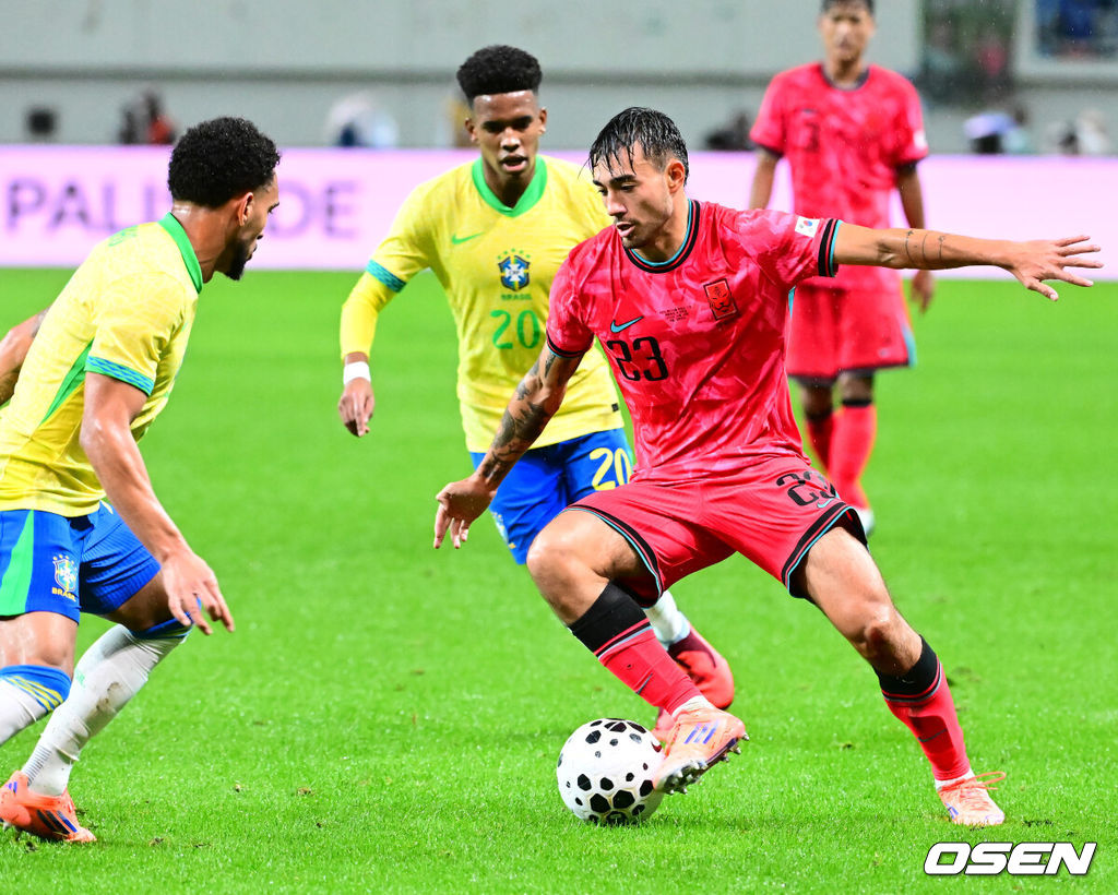 이날 세계적 명장 카를로 안첼로티 감독이 이끄는 브라질은 비니시우스 주니오르, 호드리구, 마테우스 쿠냐, 카세미루 등 최정예 멤버를 모두 출격시키면서 한 수 위의 전력을 제대로 보여줬다. 홍명보호는 상대의 뛰어난 개인기 앞에 준비한 스리백과 중원의 빈 틈이 공략당하면서 본선 무대를 앞두고 조직력 강화라는 또 하나의 숙제를 안게 됐다.
