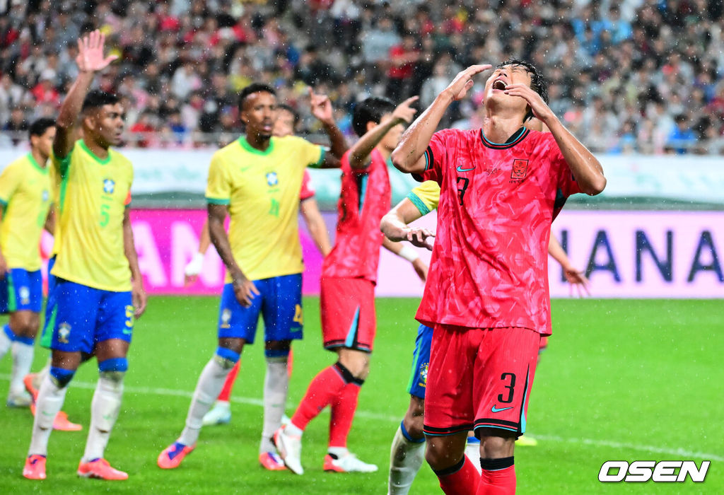 한국은 1999년 이후 26년 만에 브라질전 승리를 노렸으나 단 한 차례도 주도권을 잡지 못했다. 상대의 빠른 전개와 개인기에 흔들렸고, 중원의 공백과 수비 라인의 간격이 끊기며 잦은 실수를 범했다.