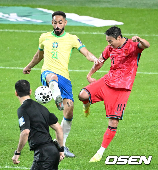 브라질이 내 집처럼 한국 진영의 중앙을 장악하면서 너무 편하게 공격 찬스가 이어졌다. 후반전에서 한국은 백승호와 카스트로프, 김진규 등을 투입하면서 다양한 조합을 테스트했다. 그만큼 어느 조합도 안정적인 모습은 나오지 않았다. 후반 31분 백승호 대신 원두재를 투입하면서 모든 선수를 점검하고 나섰다.