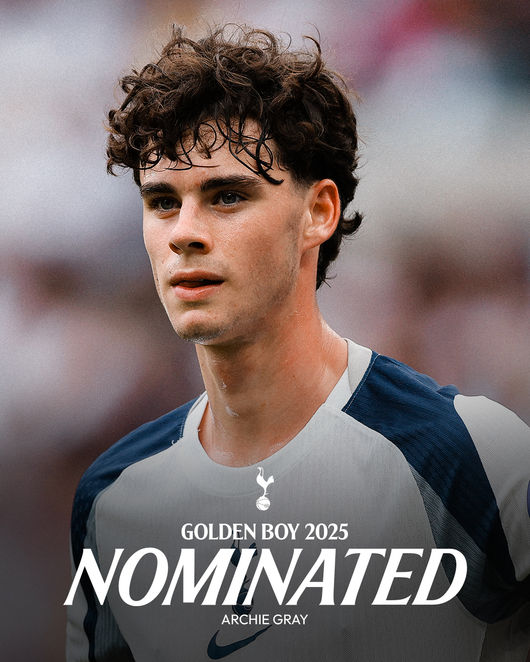 토트넘은 16일(한국시간) 구단 홈페이지를 통해 "그레이와 베리발이 2025 골든 보이 최종 후보에 올랐다. 이탈리아 매체 '투토 스포르트'가 주관하는 이 상은 기자들이 뽑은 '유럽 국가 1부 리그에서 1시즌간 가장 인상적인 활약을 펼친 21세 이하 선수'에게 수여하는 상이다"라고 공식 발표했다.