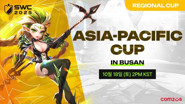 컴투스는 17일 글로벌 e스포츠 대회 ‘서머너즈 워 월드 아레나 챔피언십 2025(이하 SWC2025)’ 아시아퍼시픽 컵을 오는 10월 18일 오후 2시, 대한민국 부산e스포츠경기장에서 개최한다고 밝혔다.