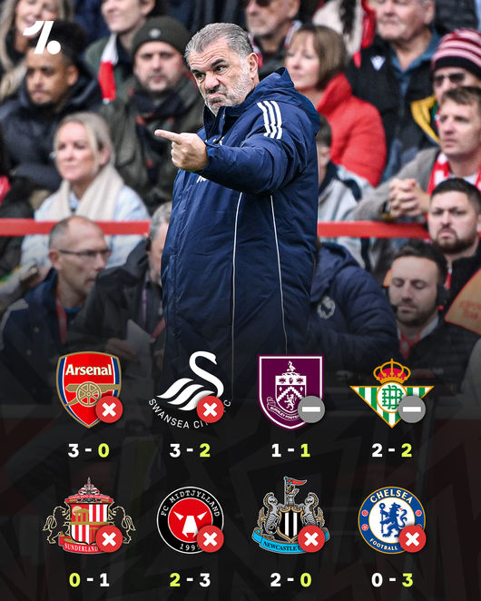 포스테코글루 감독은 10월 A매치 직전 뉴캐슬에도 패하며 끝없이 추락했다. 그는 "내게 시간을 달라. 그럼 이야기는 언제나처럼 똑같이 우승 트로피로 끝난다"라고 주장했지만, 공헌한 외침일 뿐이었다.