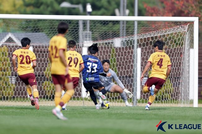 광주가 아쉬움을 삼켰다. 후반 20분 하준혁이 박스 안으로 좋은 로빙패스를 배달했다. 박휘건이 수비를 등지고 공을 지켜낸 뒤 동료에게 내줬다. 이를 김요훈이 강력한 왼발 슈팅으로 연결했지만, 골키퍼 선방에 막혔다.