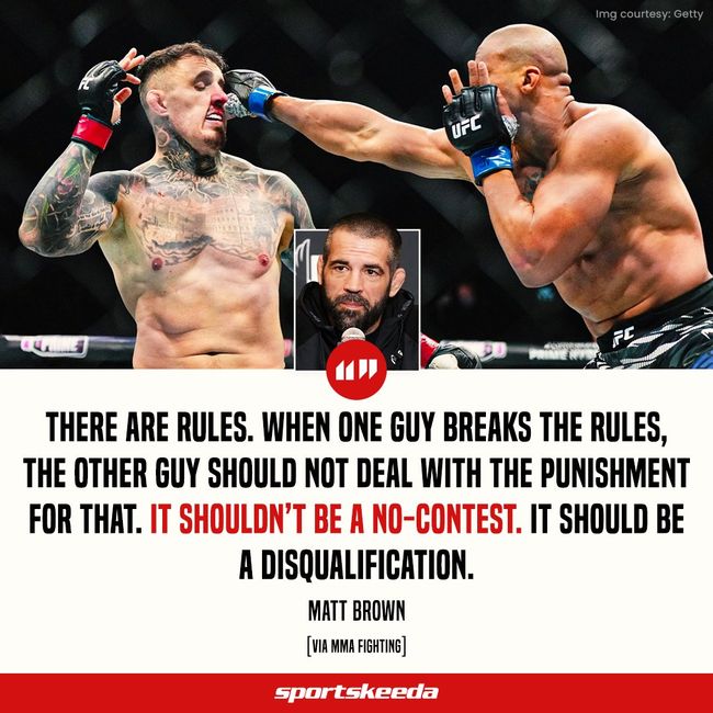 UFC 차원의 규칙 변경도 촉구했다. 브라운은 "우리는 단순한 길거리 싸움이 아니라 스포츠를 하고 있다. 이건 진짜 스포츠고, 규칙이 있다. 한 선수가 규칙을 어겼을 때 다른 선수가 그 대가를 치러선 안 된다. 노 콘테스트가 아니라 실격 처리돼야 한다"라며 "기준을 따르고 실격 처리해야 한다. 간이 재경기할 자격이 없다는 건 아니다. 하지만 여기선 실격이 맞다"라고 강조했다.