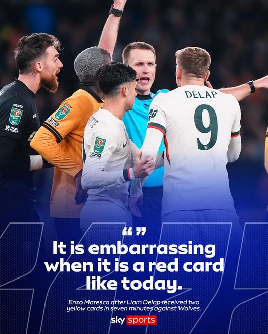 엔조 마레스카 첼시 감독이 리암 델랍(22)의 쓸데없는 퇴장에 분노를 감추지 못했다.