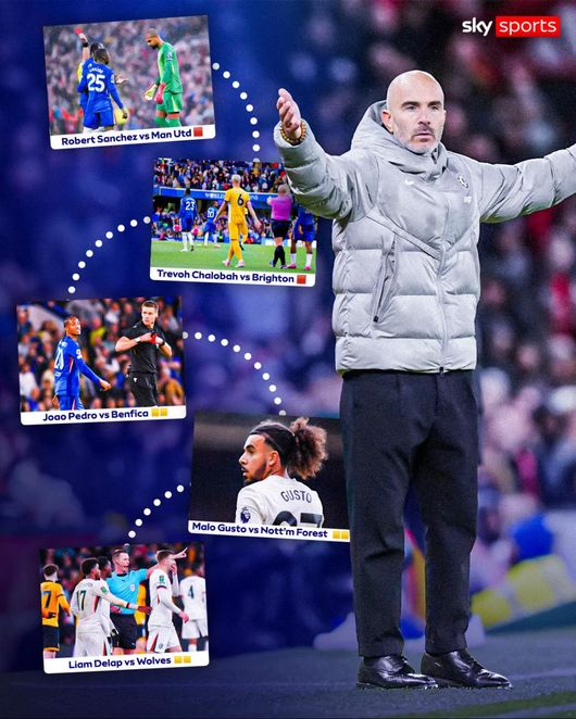 특히 첼시는 최근 9경기에서 5명이나 퇴장당했다. 마레스카 감독이 리버풀전에서 극장골에 기뻐하다가 테크니컬 에어리어를 벗어나 경고 누적으로 퇴장당했던 것까지 포함하면 레드카드만 6장을 받았다. 그가 델랍의 황당 퇴장에 이토록 화가 난 것도 이해가 가는 이유다.