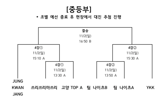 중등부는 정관장과 YKK가 4강에 직행했다. 6강전은 쓰리쓰리마쓰리 대 고양 TOP A, 팀 나이츠B 대 팀 나이츠A의 대진이 성사됐다. / jasonseo34@osen.co.kr