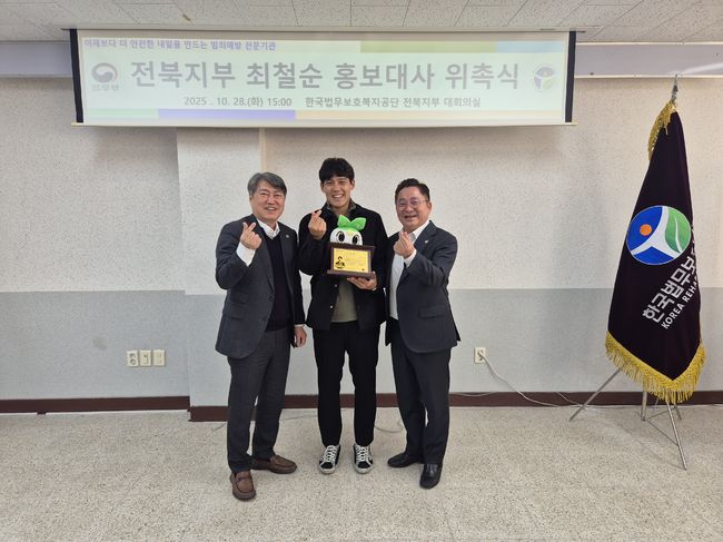 한국법무보호복지공단 전북지부는 28일 2025년 3분기 신규 법무보호위원 및 전북현대모터스 소속 최철순 선수에 대한 홍보대사 위촉식을 개최하였다고 밝혔다.