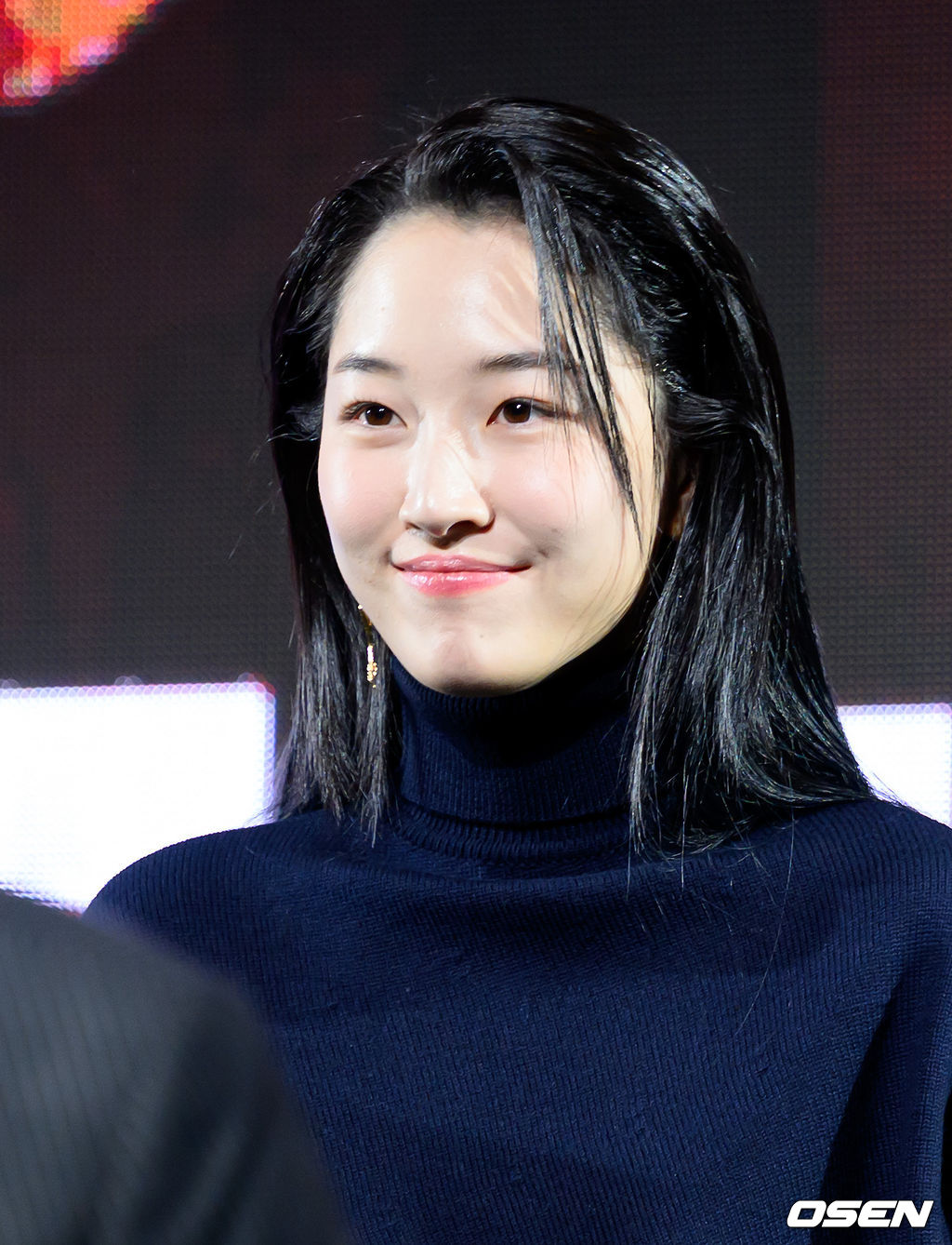 배우 원지안이 취재진의 질문을 듣고 있다. 2025.12.15 /sunday@osen.co.kr
