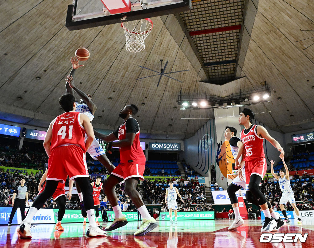 3쿼터 한국가스공사 라건아가 SK 자밀 워니의 수비를 피해 슛을 시도하고 있다. 2026.01.24 /jpnews@osen.co.kr