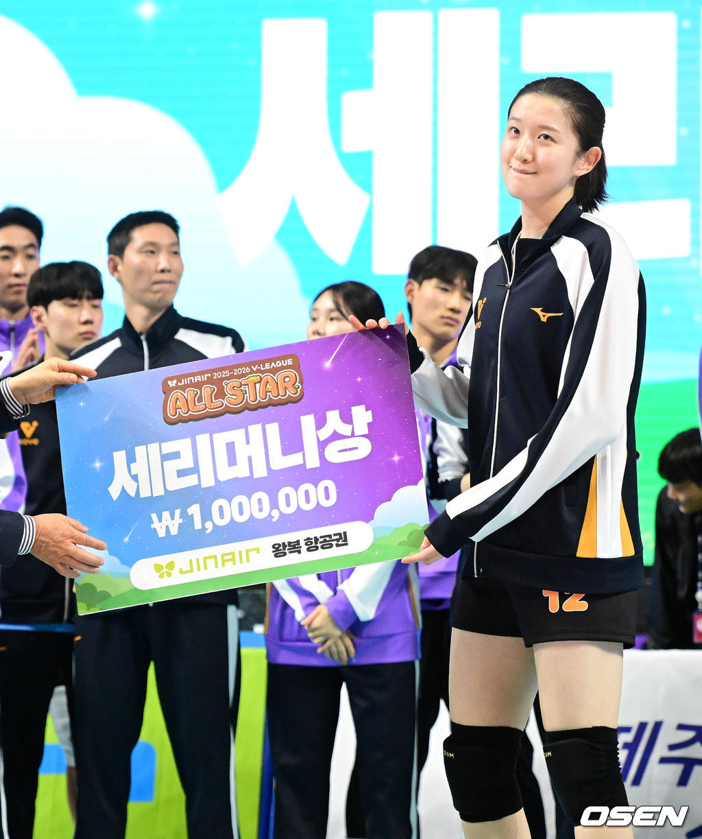 현대건설 이다현이 세리머니상을 수상하고 있다. 2026.01.25 /jpnews@osen.co.kr