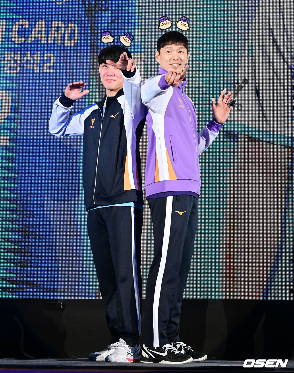 우리카드 한태준, 대한항공 한선수가 입장하고 있다. 2026.01.25 /jpnews@osen.co.kr